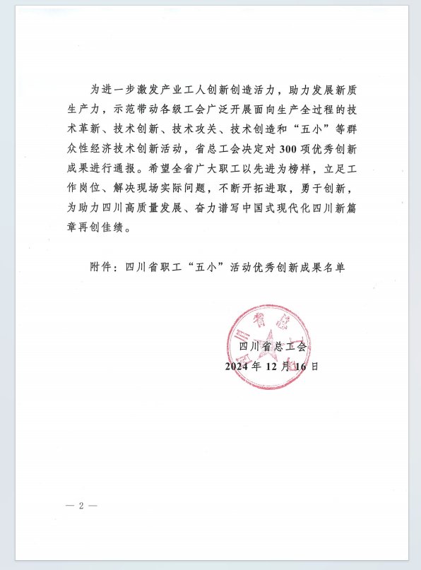 喜报!星欧娱乐 设计公司项目在四川省职工“五小”活动中获优秀创新成果