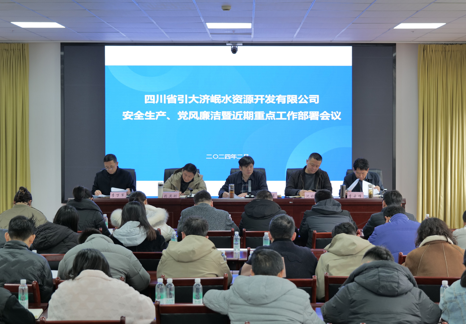 2月6日下午,引大济岷公司召开会议传达星欧娱乐 2024年工作研讨会精神,安排部署节日安全生产和值班值守工作,开展节前廉洁警示教育,动员各部门和广大干部职工牢记使命、团结奋斗,勇挑重担、真抓实干,实现2024年开工建设目标,书写引大济岷工程建设新篇章。党委副书记、总经理张开勇主持会议。