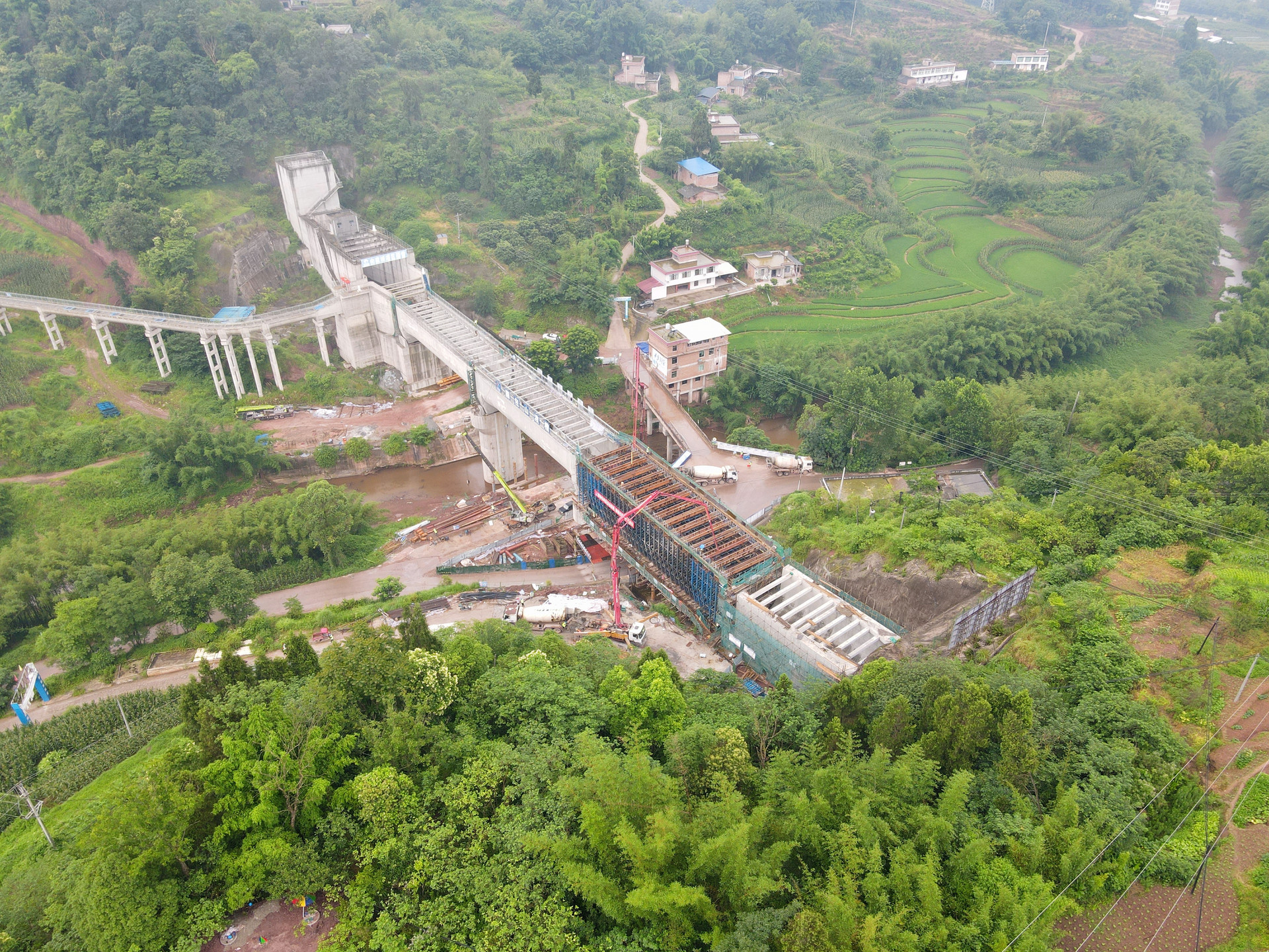 圆包山渡槽浇筑最后一跨航拍图