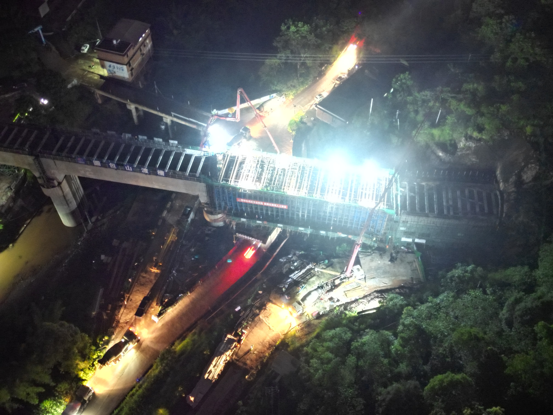 圆包山渡槽夜间加紧施工