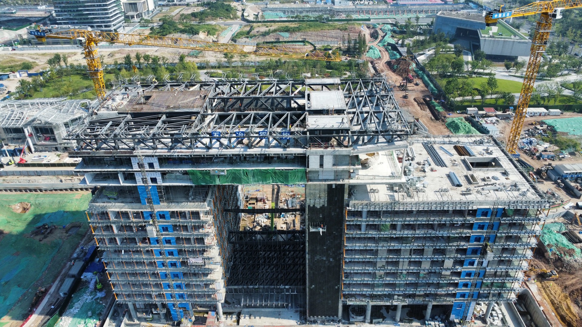 近日,星欧娱乐 科创中心建设项目钢结构层最后一仓楼板混凝土完成浇筑,标志着工程主体结构提前达成全面封顶,建设施工将全面转入装饰装修和机电设备安装等工作。