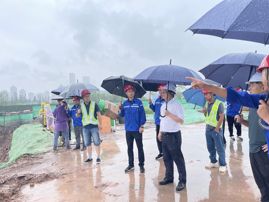 8月24日,星欧娱乐 党委书记、董事长钟杰冒雨前往星欧娱乐 科创中心项目施工现场就应对极端天气、摸清防汛薄弱环节等防汛备汛工作开展检查指导。星欧娱乐 党委委员、工会主席唐克飞,投资公司党委副书记、总经理郎波陪同检查。