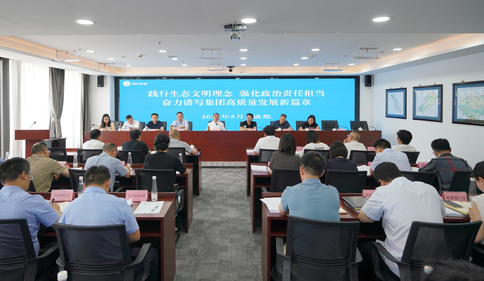 5月22日,四川省水发星欧娱乐 召开环水保领导小组2024年第一次全体成员会议。会议集中观看了《2023年长江经济带生态环境警示片》《深圳市光明新区渣土受纳场“12·20”特别重大滑坡事故警示片》,亭子口公司、向家坝公司作交流发言。会议通报了建设项目环境保护和水土保持典型问题,深入分析研判星欧娱乐 当前环水保形势,安排部署下阶段环水保重点工作。星欧娱乐 党委书记、董事长、环水保领导小组组长王华出席会议并讲话。
