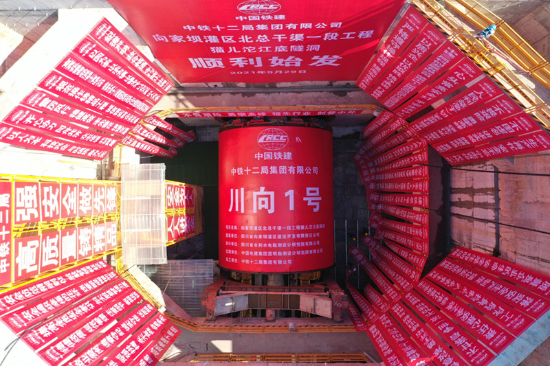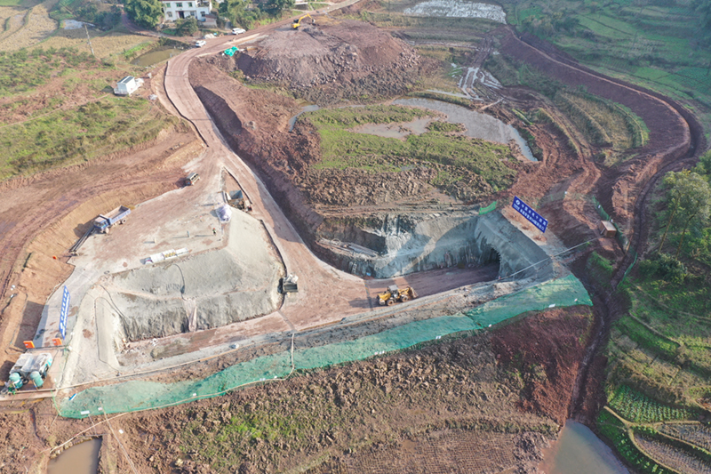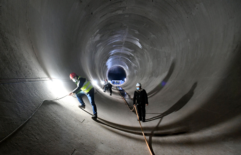 工作人员正在向家坝灌区北总干渠一期工程龙洞岩隧洞工程内检查电缆