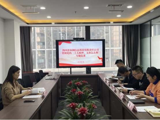 马璐同志领学了党的二十大报告,理论先行,引导公司全体党员职工静下心来读原著、学原文、悟原理,充分领悟党的二十大精神。同时,结合个人专业经验与认识体会,重点学习了党的二十大报告中关于信息化的新理论、新表述,带领党员职工结合2023年全国水利工作会议精神,对新形势下公司重点任务进行了安排部署,并要求全体党员职工进一步增强“水利人”在肩负四川骨干水网建设伟大征程中的责任感与使命感。
