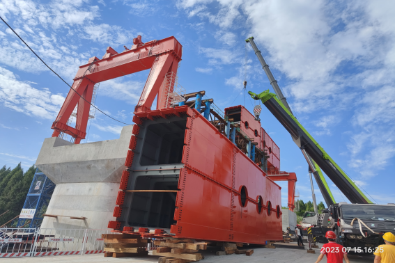 亭子口II标 老吴坝渡槽造槽机主梁顺利拼装完成 7月17日,亭子口II标老吴坝渡槽施工现场,经过各方人员的不懈努力,重达250吨的造槽机主梁成功完成拼装。这也是亭子口灌区一期工程第一台造槽机开始拼装,为后续外模拼装和渡槽混凝土浇筑打下坚实的基础,具有里程碑的意义。