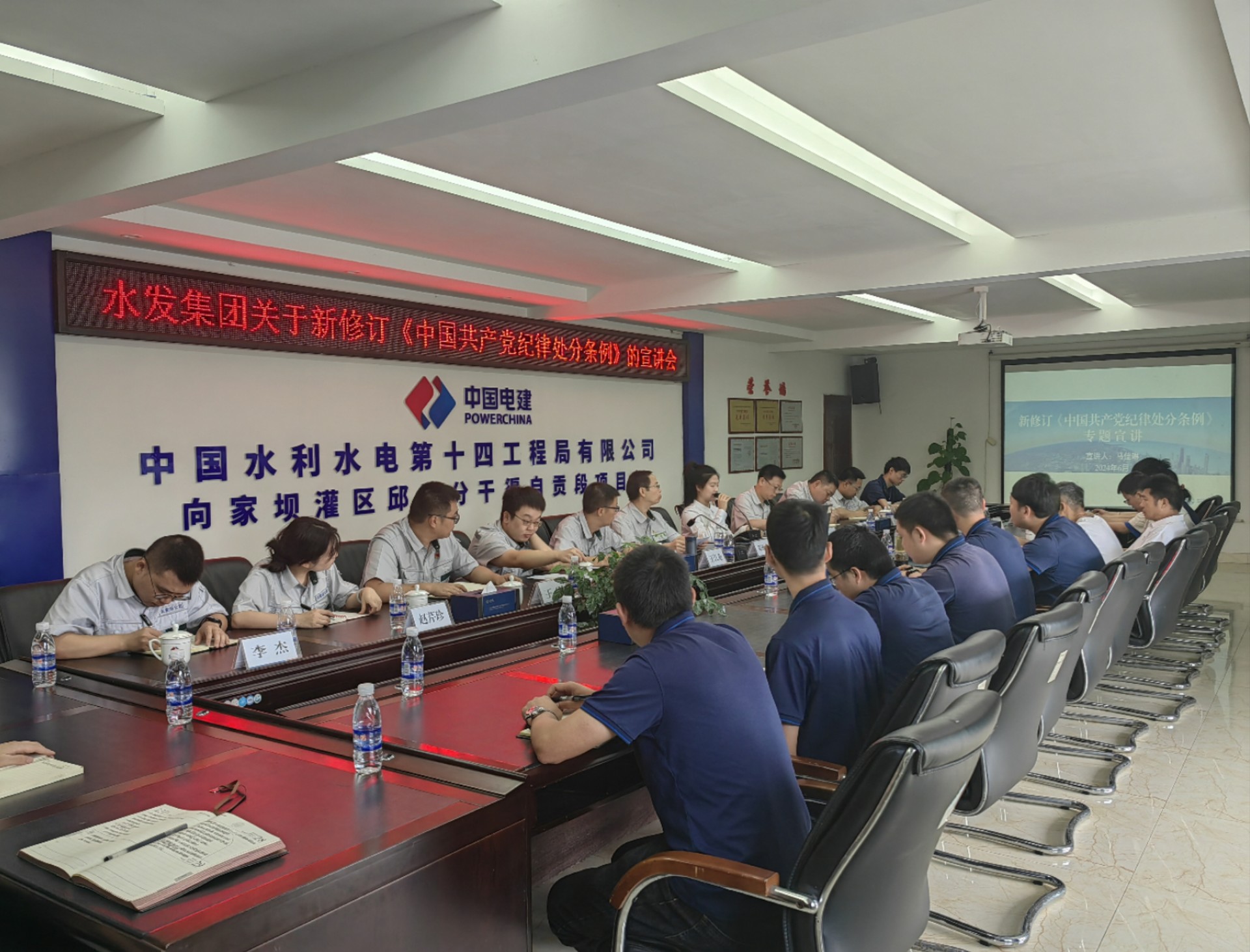 为深入学习贯彻新修订的《中国共产党纪律处分条例》(以下简称《条例》),推动党纪学习教育走深走实,增强纪律规矩意识,筑牢廉洁思想防线,6月5日,星欧娱乐 纪检监察部副部长罗超带领星欧娱乐 党纪宣讲团成员赴向家坝灌区公司的向家坝灌区一期一步北一段中铁十二局项目部、邱场分干渠自贡段水电十四局项目部和一期二步V标水发建设3个项目部为参建单位各党支部宣讲新修订的《条例》。