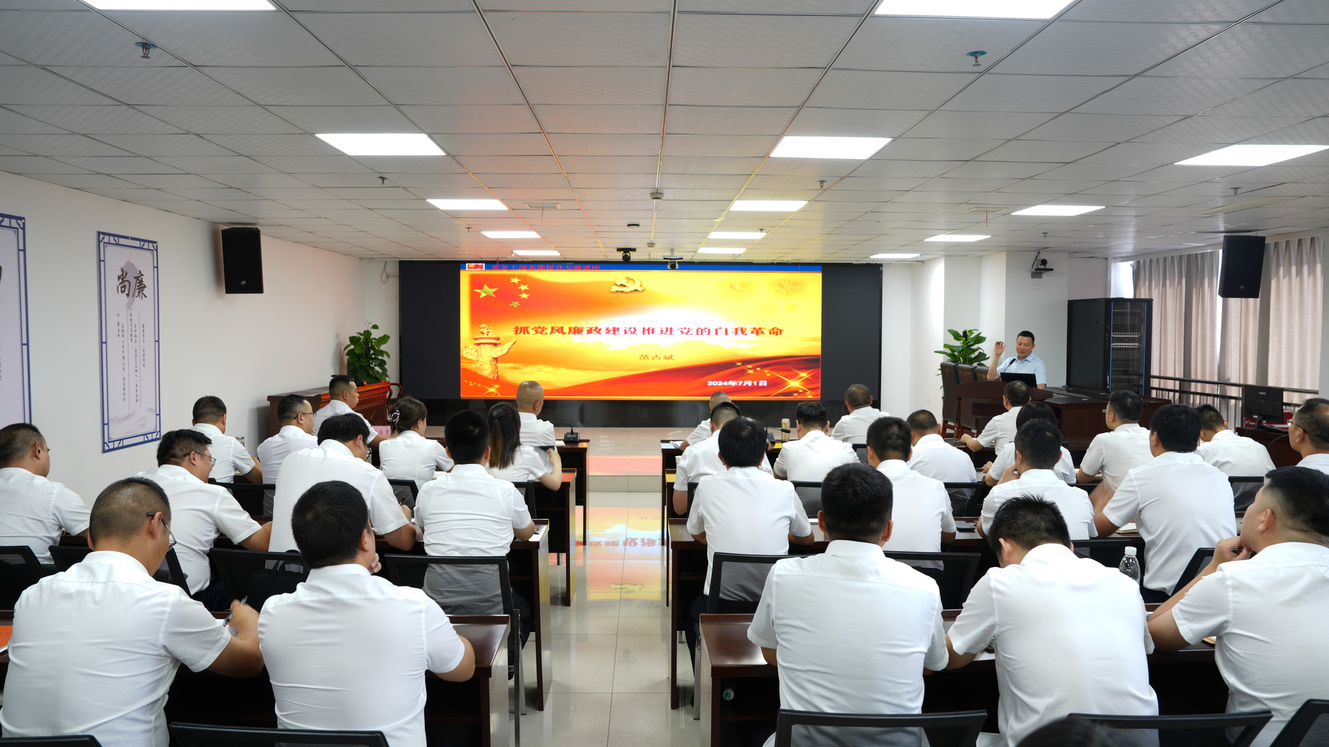会上,授课老师以《抓党风廉政建设推进党的自我革命》为题,从保持解决大党独有难题的清醒和坚定、加强党风廉政建设的紧迫性和新要求、提升党性修养落实党风廉政建设职责等三个方面为全体党员和干部职工讲授专题党课。