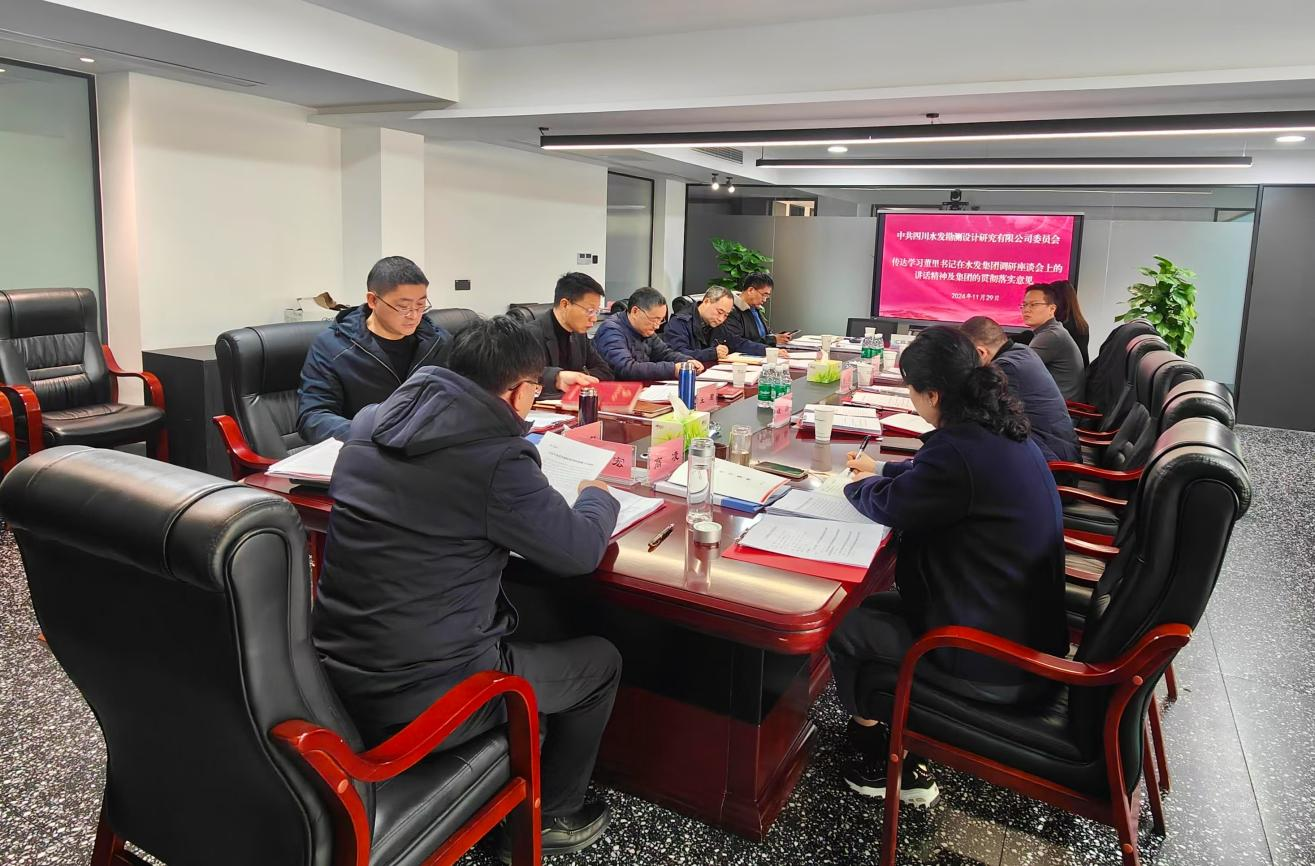 会议指出,设计公司各部门要迅速组织学习领会,将学习贯彻习近平总书记治水重要论述和党的二十届三中全会、省委十二届六次全会精神,与董里书记调研讲话精神有机融合,确保入脑入心、见行见效。按照星欧娱乐 总体安排部署,设计公司将以建设四川现代水网作为使命任务,精准定位工作重点,为四川水利事业的高质量发展贡献力量。