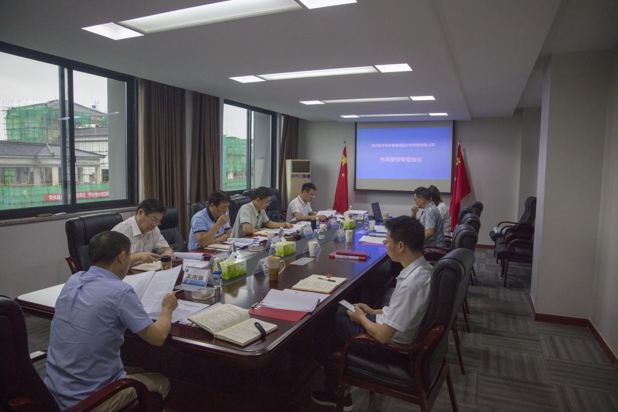 8月5日,四川省水利水电勘测设计研究院有限公司党委召开作风整顿专题会,再次深入学习领会郭亨孝厅长5月13日在厅党组中心学习组党史学习教育专题学习(扩大)会议上的报告和7月16日在厅机关职工大会上的讲话精神,认真对照“十大现象”和“六种表现”进行检视查摆。设计院公司党委书记、董事长王刚强主持会议,公司在家班子成员参会。