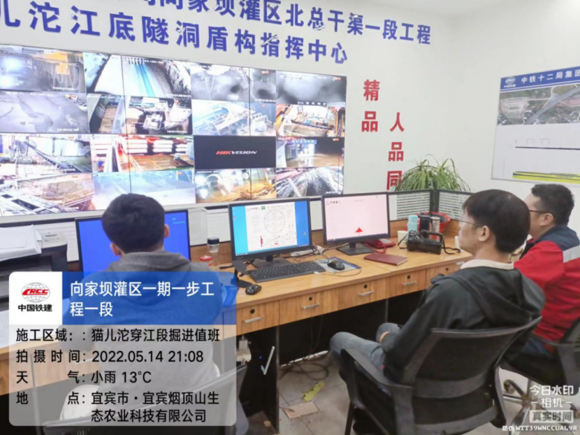 5月14日18点,宜宾市防汛抗旱指挥部办公室发布关于做好洪峰过境防范应对工作的紧急通知,预计14日21时岷江出现洪峰,预报洪峰流量7590m3 /s,洪峰水位278.32m(警戒水位283.85m),水位变幅2.70m。汛情就是命令。向家坝灌区公司防汛工作领导小组庚即启动应急预案,第一时间将水情信息通报给猫儿沱江底隧洞作业现场,并按预案迅速开展应对工作。猫儿沱工地临时党支部也迅速行动起来,党员突击队的队员们主动要求参与值班,及时准确将水位监测信息反馈给现场盾构机操作人员。在施工现场,操作人员实时调整盾构掘进参数,并全过程监控掘进情况,有效避免盾构下穿岷江段切口水压不稳定造成安全风险。15日凌晨3点,通夜值守人员全神贯注,岷江水位上涨3.1m,项目施工稳步安全有序进行。此后,上涨水位逐渐下降。但值守人员仍未懈怠,至今洪峰过境,水位恢复正常。