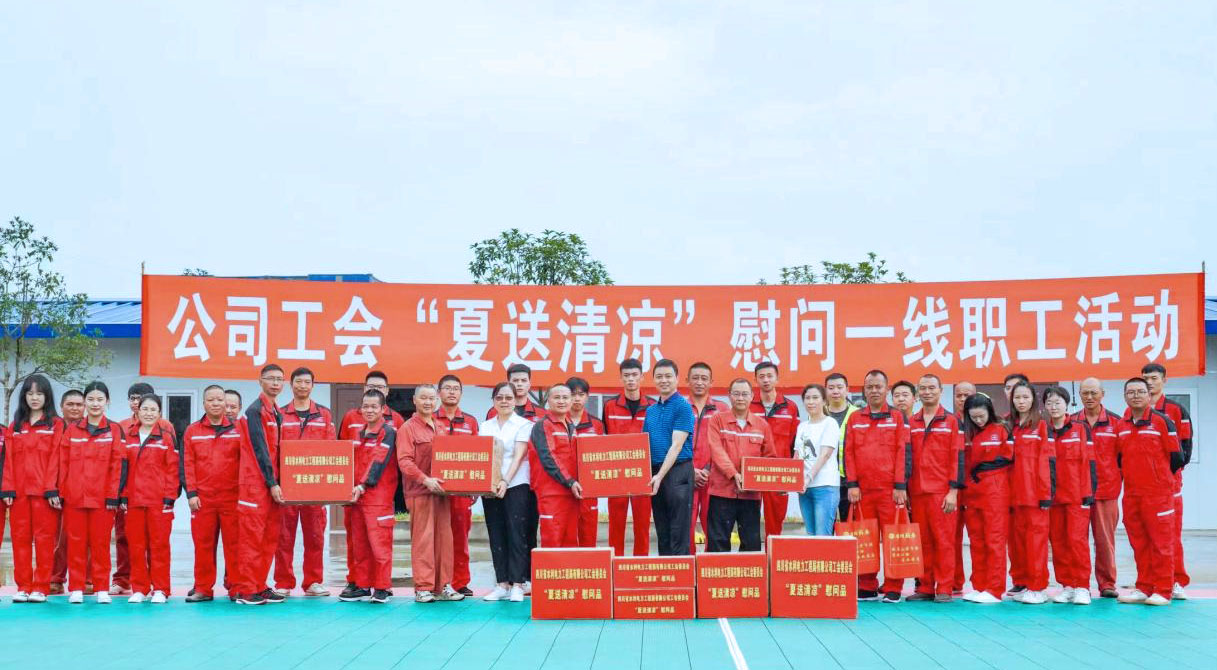 8月5日,公司党委委员、职工董事、工会主席夏永红,纪委委员、工会副主席付麟丽,工会办公室主任秦利一行到青神虎渡溪航电枢纽工程项目开展“夏送清凉”慰问及工作调研,为一线职工送上防暑降温物品,带来组织的关怀。