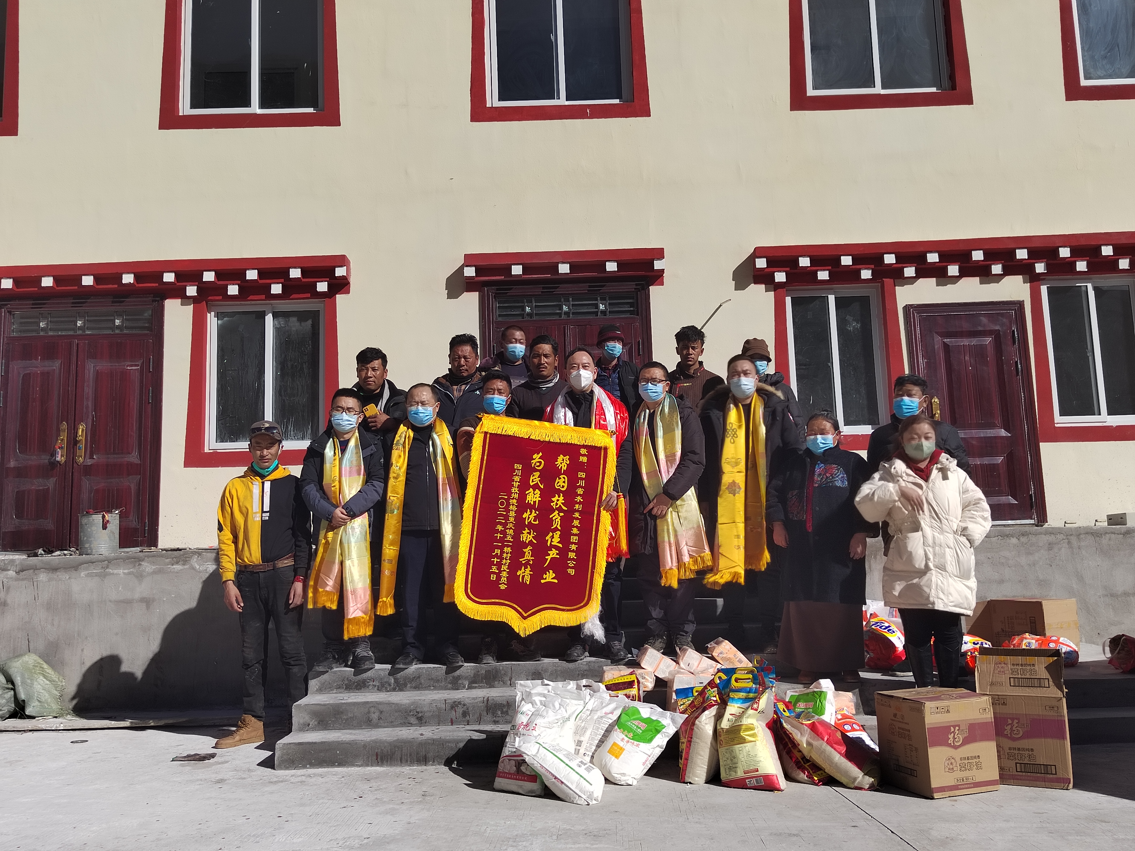 在五一桥村新建党群活动中心建设现场,尹晓东一行与五一桥村两委班子就发挥党员先锋模范作用,壮大集体经济发展,进行了交流。尹晓东希望五一桥村两委要从规范化入手,进一步修订完善德格县德学农民专业合作社的管理制度,以制度管人、管事,增强合作社可持续发展动力,以集体经济的发展壮大反哺相对困难群体。随后,尹晓东一行向五一桥村部分群众发放了米面粮油等慰问物资并转达了钟杰董事长对大家的关心和问候。