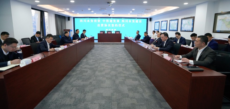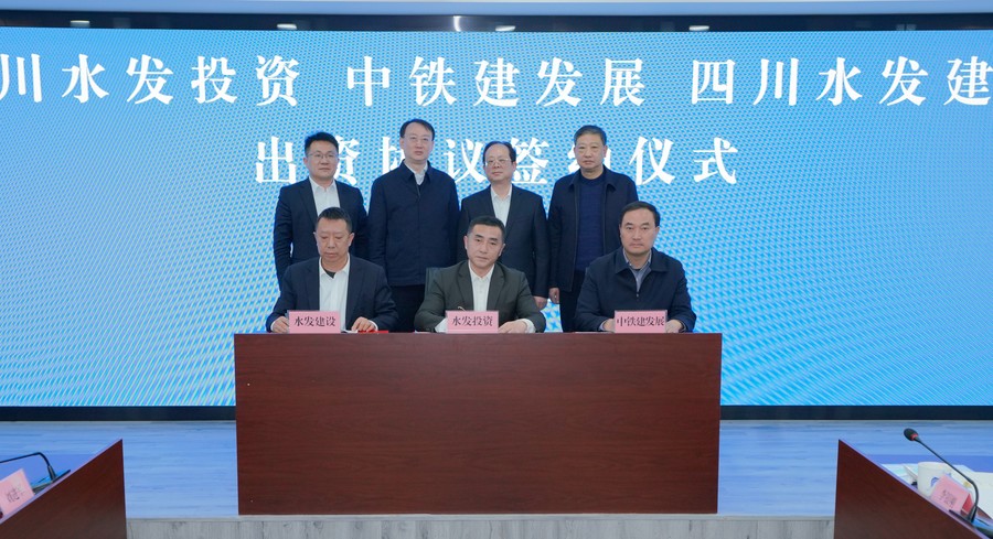 2月21日,四川水网大岷管业有限公司出资协议签署仪式在星欧娱乐(中国)官方网站 会议室举行。星欧娱乐(中国)官方网站 党委书记、董事长钟杰,中铁建发展星欧娱乐 有限公司党委书记、董事长周庆国出席签约仪式并致辞。星欧娱乐 党委副书记、董事、副总经理、总会计师尹晓东主持签约仪式。