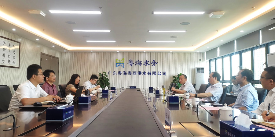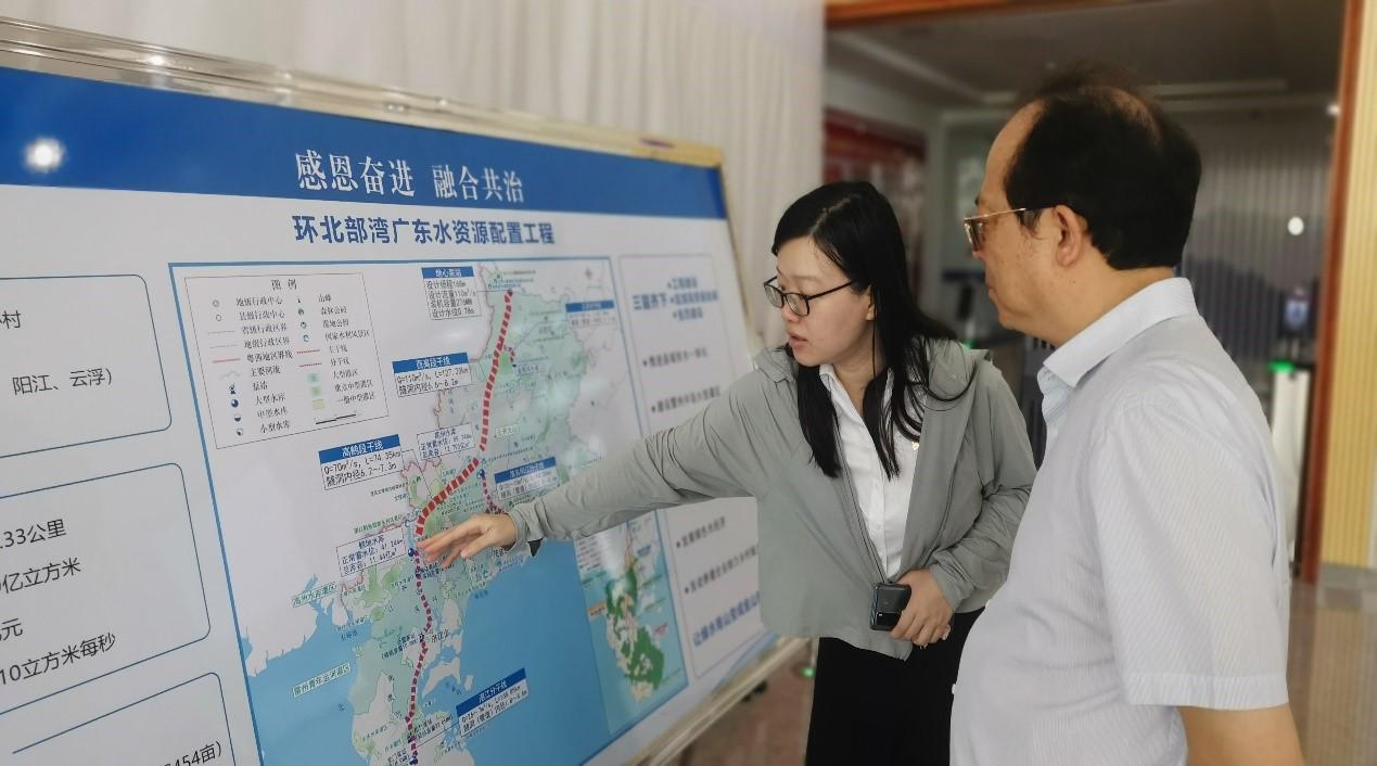 钟杰董事长先后观看了环北部湾广东水资源配套工程展板,听取了工程项目介绍,并与项目业主广东粤海粤西供水有限公司举行座谈。