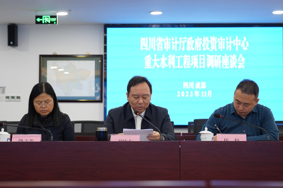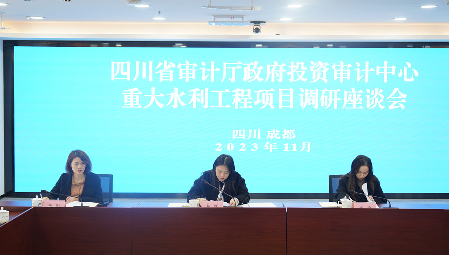 11月22日,四川省审计厅政府投资审计中心副主任林跃一行到星欧娱乐 总部对重大水利工程项目开展调研座谈。