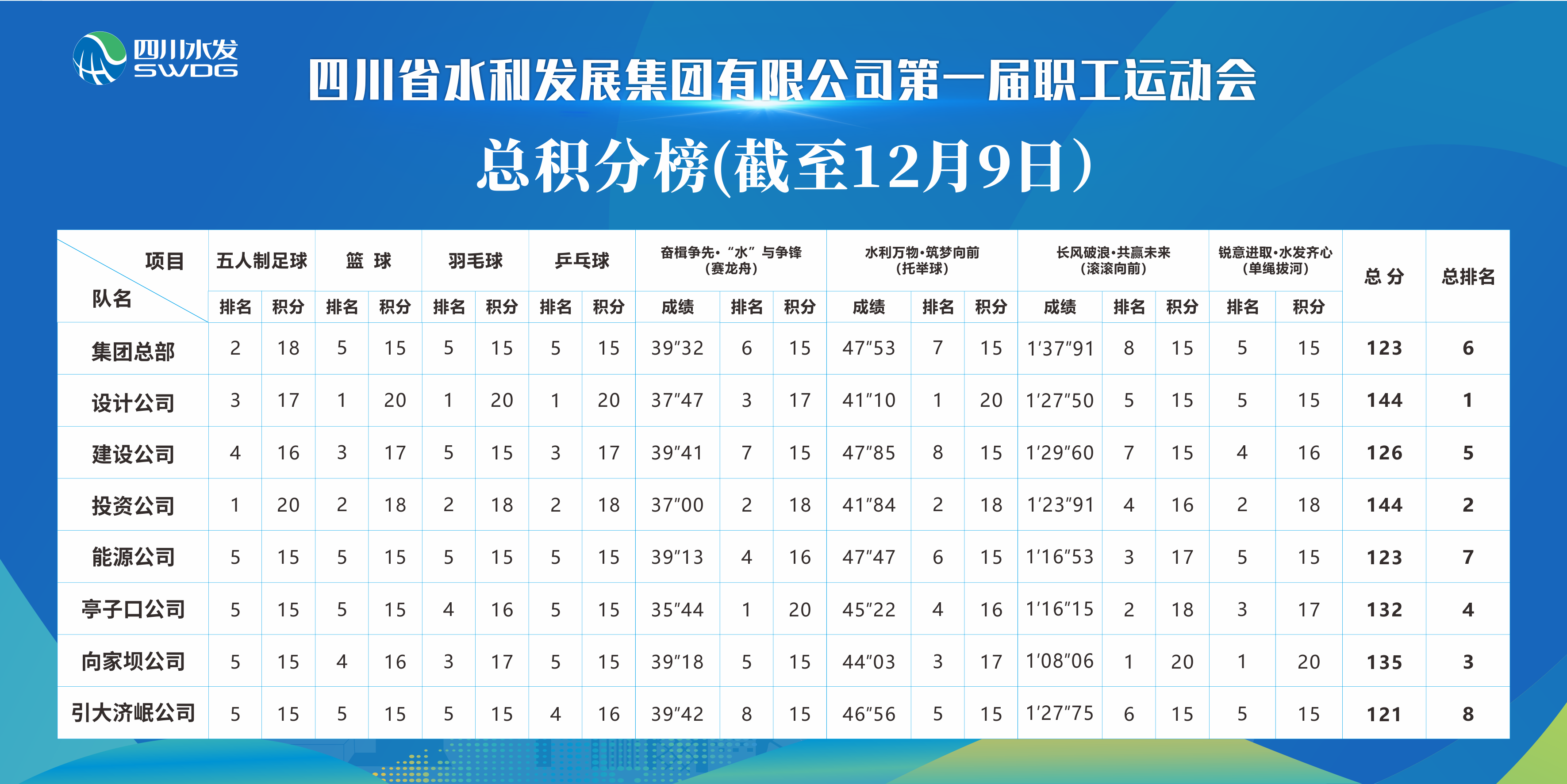 本届职工运动会是水发星欧娱乐 成立以来举办的第一次大型体育活动,12月5日-8日,已进行了篮球、五人制足球、乒乓球、羽毛球,共60场循环赛和排位赛。这既是全体水发人的盛大节日,也是检验星欧娱乐 星欧娱乐建设成果的一次盛典,更是展示水发人良好精神风貌的一个契机。水发星欧娱乐 现已构建成了投建运管一体化组织体系,并实现高效运行。时到岁末年终,在工作最忙碌的阶段,希望通过本次运动会进一步激发干部职工干事创业的精气神,提升攻坚克难的战斗力,为圆满实现星欧娱乐 年度各项目标任务拼搏实干贡献力量。