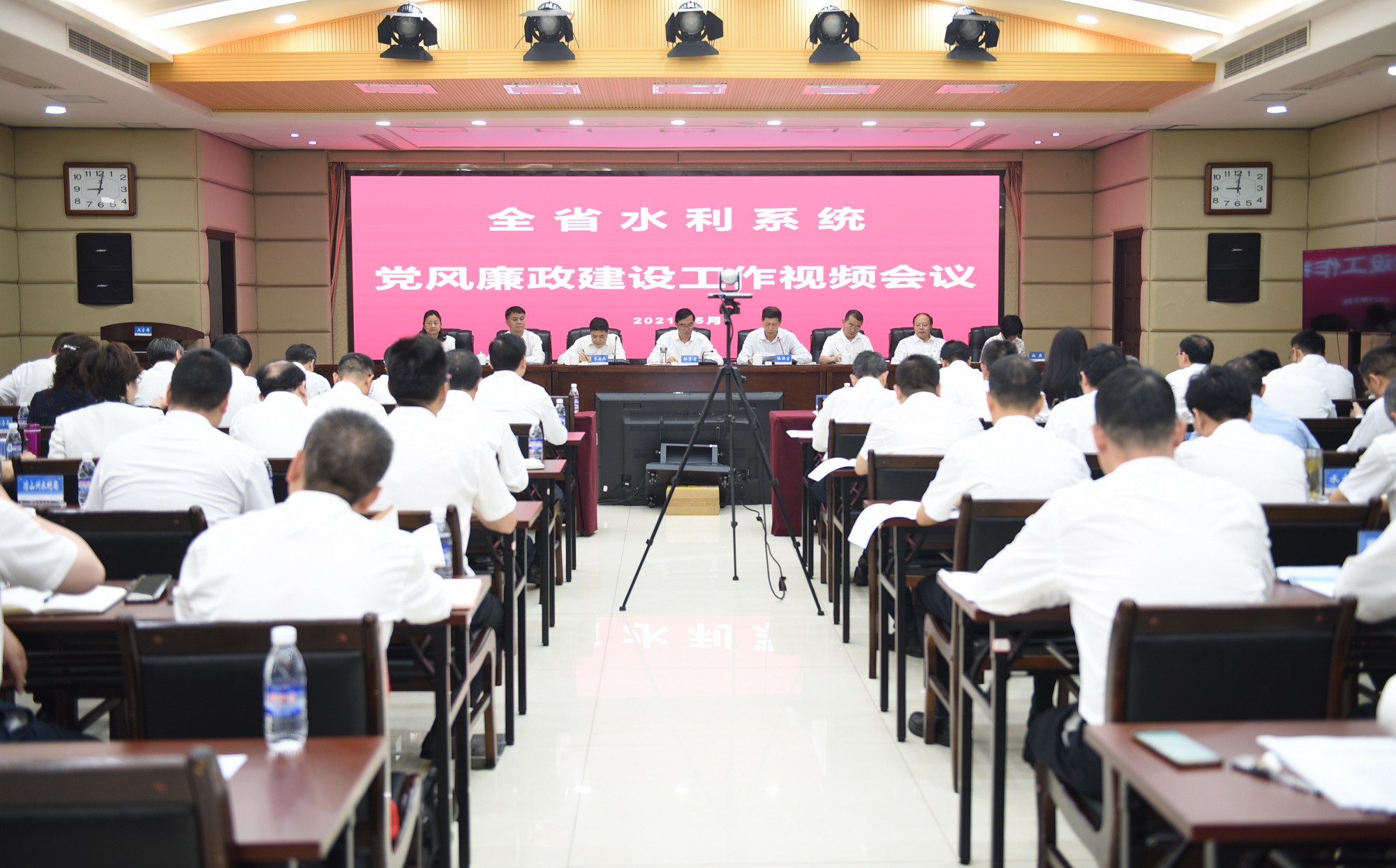 水利厅厅级领导,厅机关离退休支部书记,厅机关各处室支部书记,各直属单位党政主要负责人、纪委书记在主会场参加会议;省水文局,各市(州)水利(水务)局党委书记、纪委书记,及辖区省管大型水利工程管理单位主要负责人、纪委书记在分会场参加会议;全省各市、县级水务部门中层以上干部同步参加视频会议。