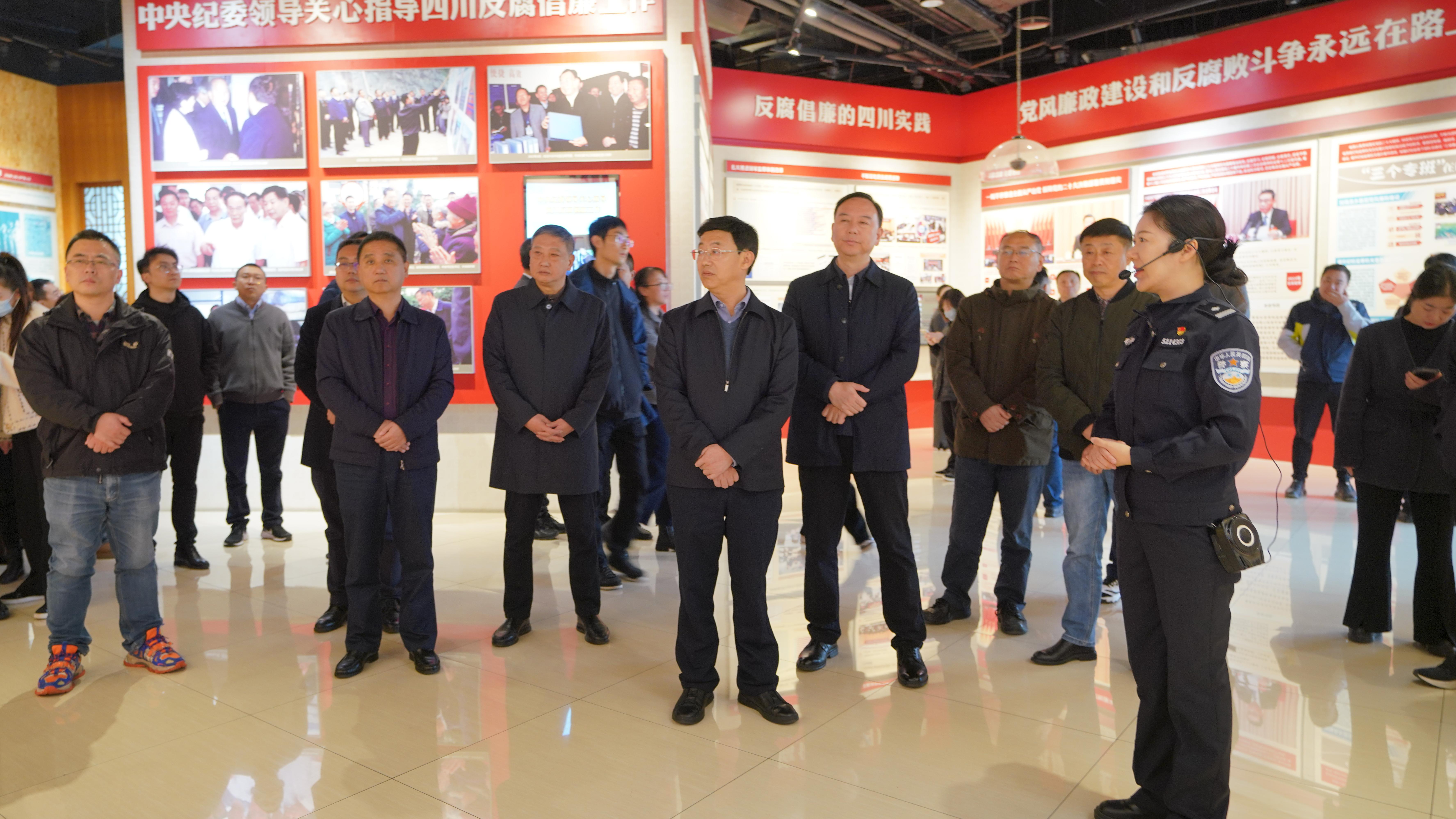 在法纪教育展厅,讲解员引导大家观看了廉政专题教育片,详细了解了我们党反腐倡廉的光辉历程,聆听了近年来四川省内发生的领导干部重大违纪违法典型案例,参观了收缴的赃款赃物,这些鲜活的案例全面生动展示了新时代反腐倡廉的成果,真正让纪律和规矩内化于心、外化于行。随后,服刑人员现身说法,讲述自己如何一步步沉沦,走上犯罪的道路,再次警醒大家要把纪律和规矩挺在前面,时刻绷紧纪律和规矩这根弦。