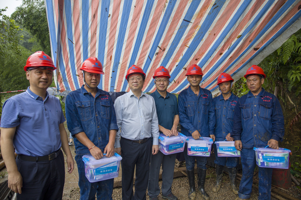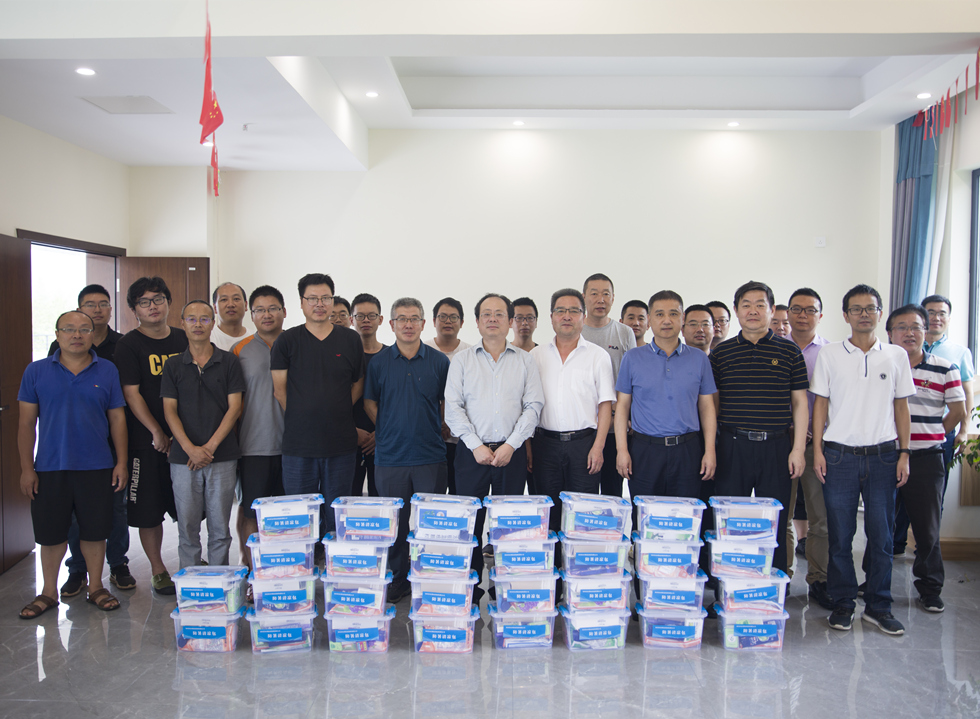 最后,钟杰和邬清富向引大济岷项目集中设计办公点的全体同志送上了水发星欧娱乐 “夏送清凉”慰问包。