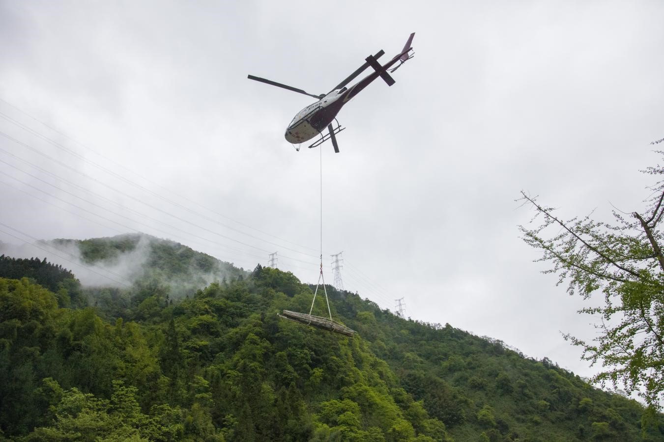 “如果采用传统的修建便道和架设索道的方案,需要开挖山体、砍伐树木,工期长、费用高,对自然生态环境破坏严重。”设计院公司副总工王子忠说:“我们本着践行绿色勘探的理念,发扬“敢想敢干敢成”的精神,通过多次现场踏勘和详细论证,最终确定用直升机吊运钻探设备,不仅能缩短运输作业时间,还避免了传统施工方式带来的生态环境破坏。”