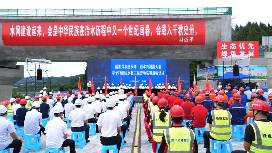 启动仪式上宣读了《全省重大水利工程项目“盛世兴水建水网·治水兴川润天府”劳动竞赛方案》,竞赛以“比党的建设、比工程建设质量、比安全生产、比工程进度、比科技创新、比环境保护及文明施工成效、创和谐稳定队伍”的“六比一创”为主要内容,将不同行业、不同性质的参建单位,分成施工类、监理类、设计类、支持保障类4个类别,分别以参建单位、项目集体、作业班组3个层级分别开展竞赛;亭子口公司与各参赛单位签订目标责任书;省水电工会向参建单位授予工人先锋号旗帜。现场掌声雷动、红旗飘扬,彭闯宣布省首届“盛世兴水建水网·治水兴川润天府”省级劳动竞赛——亭子口灌区水利工程劳动竞赛正式启动。