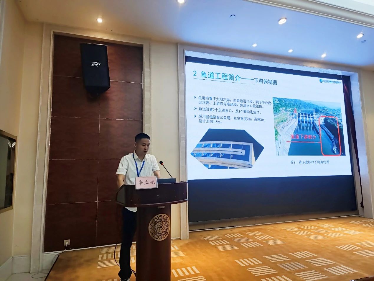 星欧娱乐 参与展示交流的作品是《一种适应水位变幅的大坝升鱼塔结构》,该作品获得了第二届水利职工创新成果二等奖,由设计公司主设工程师辛立光作为代表在会上进行交流展示。星欧娱乐 设计公司在黄石盘水库鱼道工程采用了一种能够适应库水位变幅的升鱼塔结构设计,该结构已获得国家实用新型专利。升鱼塔结构采用升船机的原理,自动控制升鱼塔内水位的自由升降,实现升鱼塔内水位与上游水库任意水位衔接,达到了鱼类通过升鱼塔自由进入上游水库的目的。