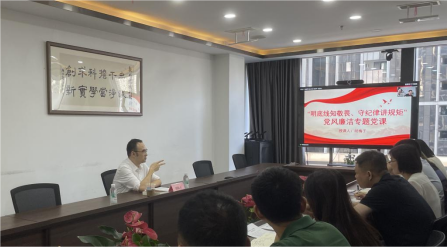 各党支部以“明底线知敬畏、守纪律讲规矩”为主题开展主题党日活动,围绕“党章要求什么、党规明确什么、党纪约束什么、我该做什么”开展了大讨论。公司领导班子成员和下属企业主要负责人在所在党支部围绕“明底线知敬畏、守纪律讲规矩”为题,联系分管领域党风廉洁建设实际,给党员干部讲授一堂廉洁党课,引导部全体党员干部懂规矩、守纪律,牢固树立规矩意识、底线意识和红线意识。