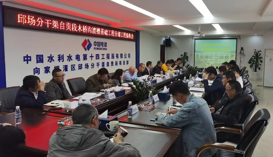 2023年11月29日,向家坝灌区北总干渠一期一步工程邱场分干渠自贡标木桥沟渡槽基础工程分部工程验收会在中国水利水电第十四工程局项目经理部会议室(富顺板桥)顺利召开。木桥沟渡槽基础工程是向家坝灌区北总干渠一期一步工程第一个组织验收的分部工程,特邀四川省水利厅质量与安全中心站参会指导,一期一步工程其余各参建施工和监理单位参会交流观摩。
