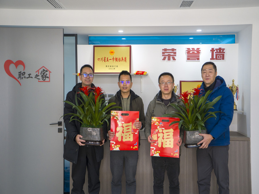 1月18日,成都市青羊区草堂街道总工会副主席叶兵慰问公司“青羊工匠”唐全民、陈昌盛。