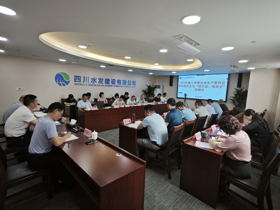 2023年7月26日,建设公司在成都召开2023年第三季度安全生产委员会全体成员会议及“迎大运、保安全”视频会议,建设公司党委书记、董事长、安委会主任袁斌出席会议并讲话。