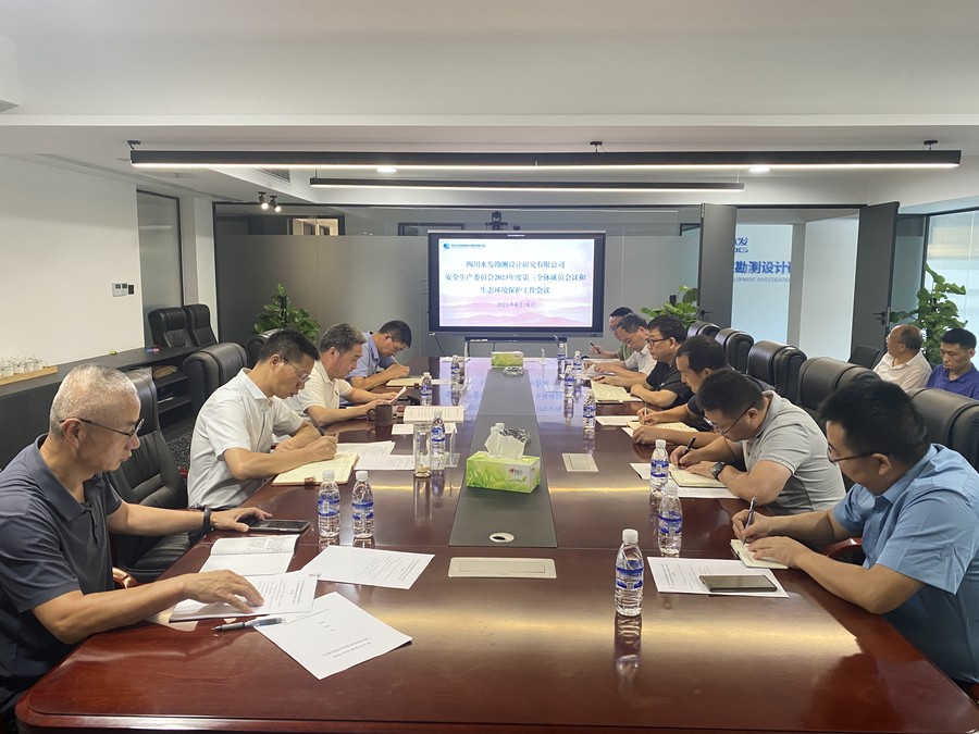 会议传达了水利部安全生产领导小组全体会议暨部直属单位视频会议精神,学习了新修订的《四川省安全生产条例》,通报了2023年第三季度危险源辨识和职业健康安全风险评价工作开展情况,总结公司2023年上半年安全生产工作,并安排部署下半年安全生产重点工作。