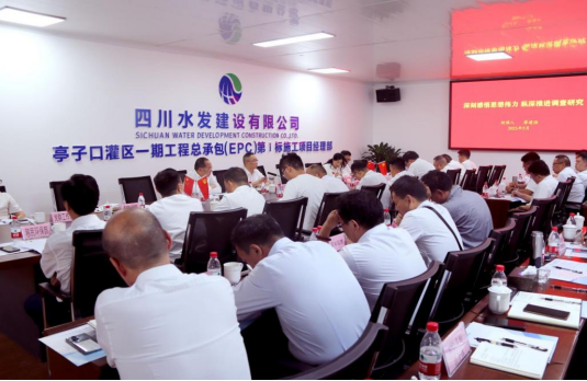 在总包项目部,支部书记范丹迪召集青年们召开座谈会,大家紧紧围绕党的二十大精神和习近平新时代中国特色社会主义思想联系自身工作和公司发展实际作了交流发言,纷纷表示将坚持用习近平新时代中国特色社会主义思想来武装头脑、指导实践、在四川现代化水网建设中建功立业。