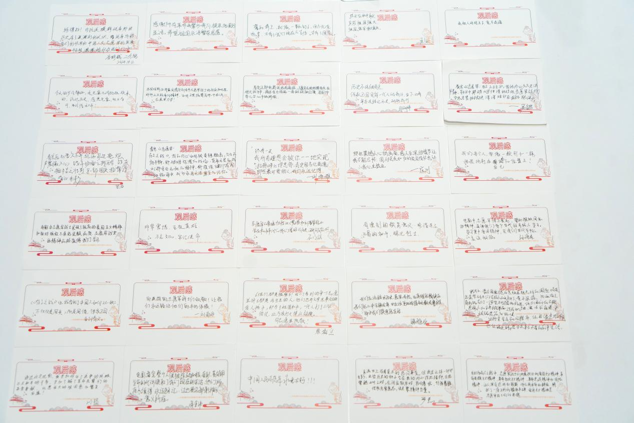影片结束后,青年职工们的内心久久不能平静,影片中那些战士们的铿锵话语仍然在每一个职工心间激荡,大家通过观后感卡片纷纷表达了感受,对那些为国家和民族献出生命的英雄们表达了自己崇高的敬意。